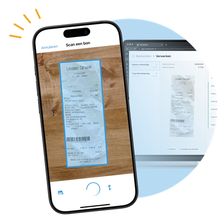 Bonnen scannen werkt razendsnel met de app. Pak je telefoon erbij, fotografeer de bon en laat MoneyMonk alle relevante informatie kopiëren.